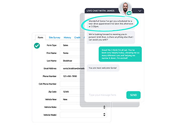 ActivEngage’s web-based platform is your hub for all digital conversations. Features like PreRead™ and Lead Form AutoFill help your team’s efficiency, while Chat Transfer and Lead Routing offer a seamless experience for you and your customers. And, all chat transcripts and lead information are sent directly to your CRM for streamlined, effective follow-up.