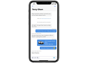 In today’s changing world customers prefer messaging a business 5X more than talking, and new technology has made them expect instant, 24/7 customer service responses. If you're not available where and when they want to chat, you're losing opportunities — but all it takes is Conversations™ to turn chats into customers. With the help of friendly A.I. and our 24/7 Managed Chat team, Conversations™ is the only messaging platform that allows consumers to message directly with your business on your website, Facebook Marketplace, Messenger, Text messages, Cars.com, and more — all inside one seamless, cross-device, and user-friendly experience.