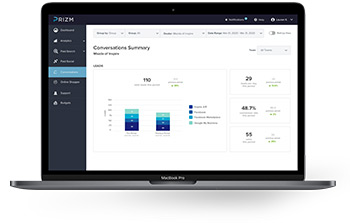 Conversations™ data seamlessly integrates into our proprietary reporting software PRIZM™, so you can see your messaging performance across every channel alongside website analytics, paid search performance, Dealer Inspire support requests, and more. Inside PRIZM™ you’ll be able to see Conversations messaging metrics like chat volume across all channels, the response performance of your team, and matchback reporting so you know when chat played a role in a sale.
