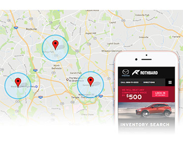 DealerOn’s platform gives our dealers the ability to conquest consumers who are “showrooming” (checking out their website from a competitor’s lot) by pushing targeted offers to website visitors, based on their actual location. Dealers can create any number and variety of offers that will fire only to visitors located within the dealer defined.