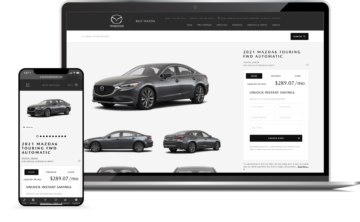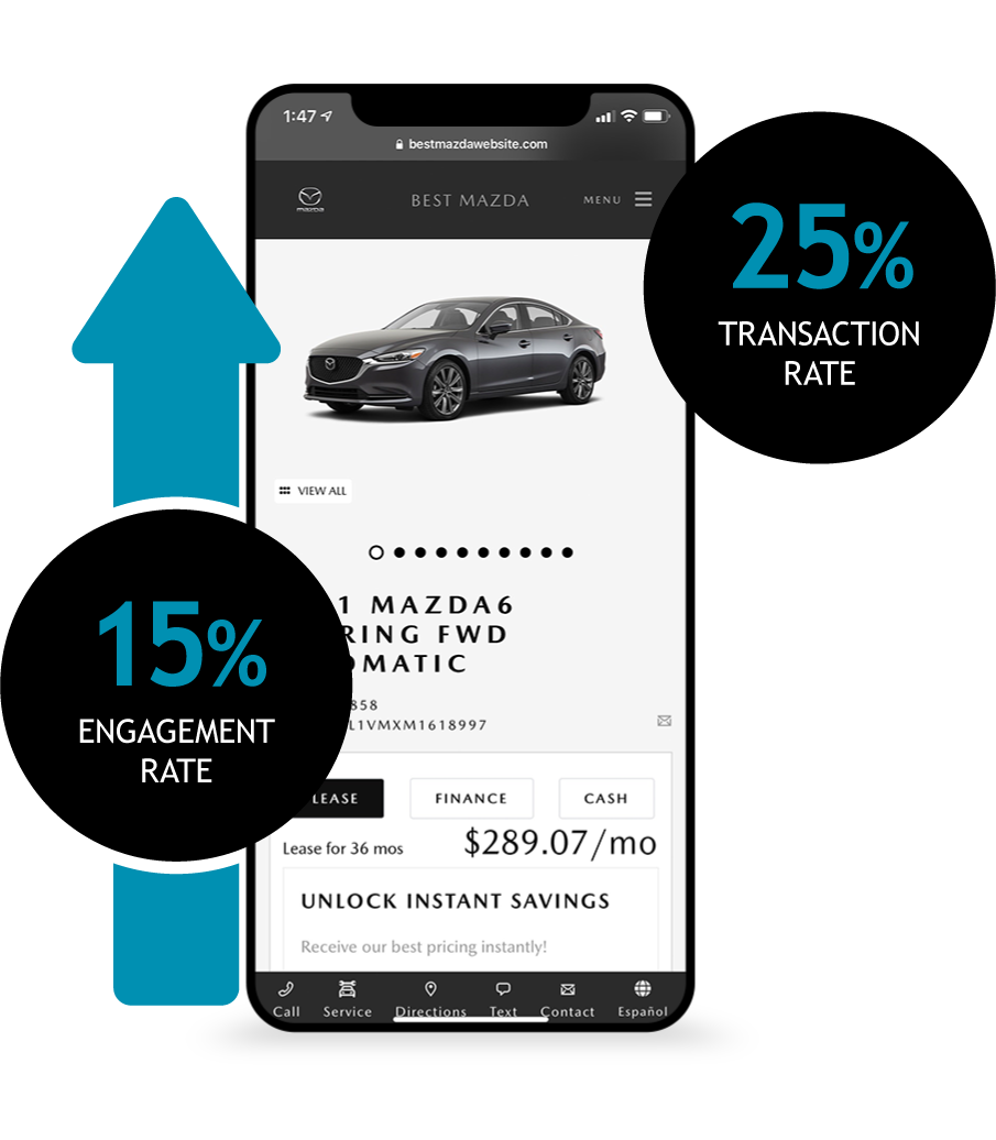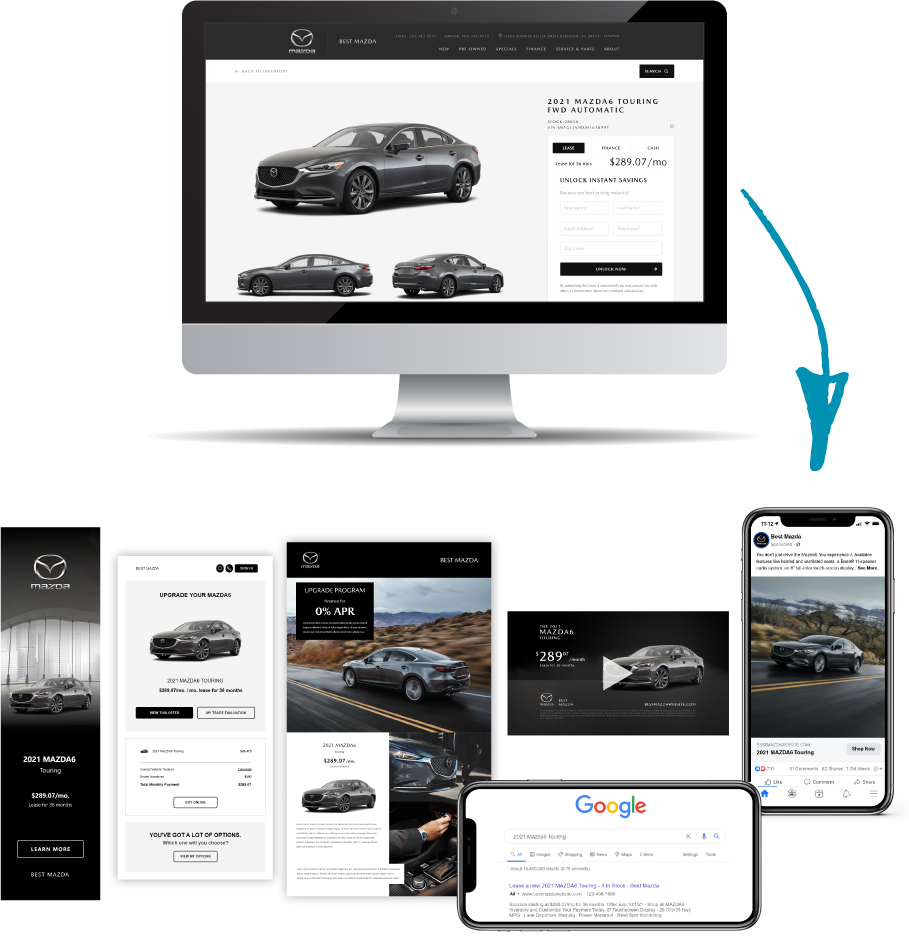 Rather than utilizing 3rd party plug-ins, our all-inclusive website platform seamlessly integrates all major applications, including: finance, trade value, service scheduling, digital retailing, video, text, SEO, ADA compliance, and creative. Everything your customers need to transact is natively built into your website, no plug-ins required, making it less expensive, lightning fast and easy to navigate.